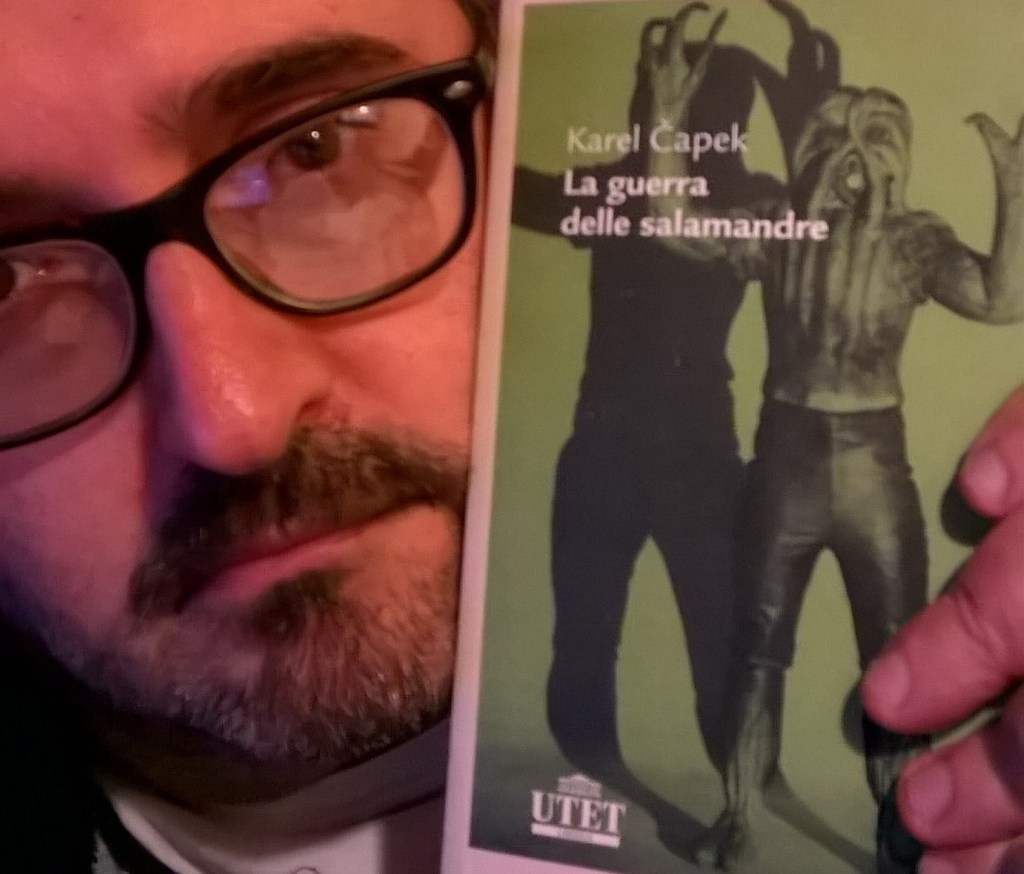 Scritto nel 1936, quando il mondo era già sull’orlo del conflitto mondiale, ha la forza evocativa del 1984 orwelliano o di Fahrenheit 451 di Ray Bradbury. Stranamente non è molto noto e io l’ho trovato quasi per caso. L’autore è uno scrittore e giornalista ceco che oltre che per questo romanzo è noto per il dramma R.U.R. (Rossums Universal Robots), nel quale compare per la prima volta il termine robot.